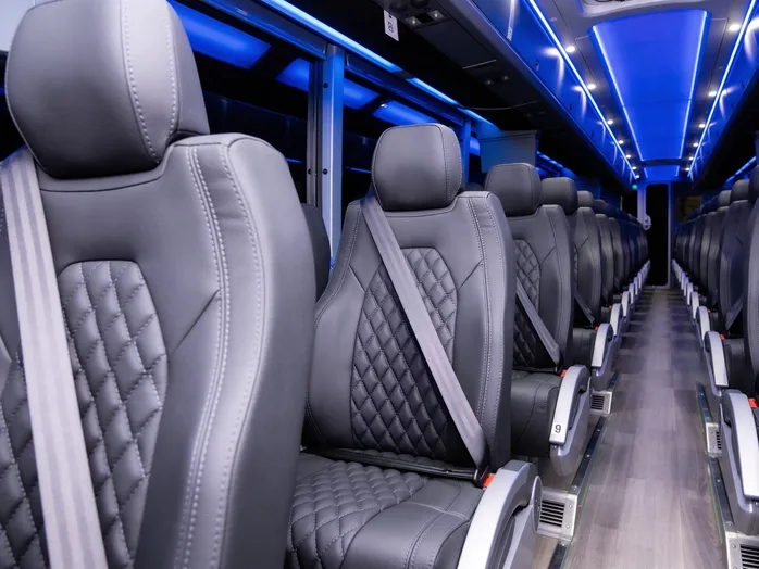 Many of these buses also feature flat-screen TVs, built-in bar areas with cup holders, and climate control systems to keep the cabin comfortable year-round. On some models, there's even a dedicated charging station for phones and laptops. The exterior is sleek and modern, making it a great choice for both casual and formal events.